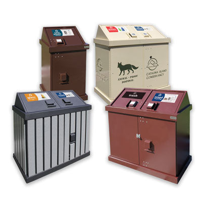 BearSaver has an extensive line of rugged, high quality animal-proof trash/recycling enclosures designed for use in a wide range of outdoor settings. They are resistant to harsh environmental conditions, vandalism, rodents and even large hungry animals. All of our receptacles offer the convenience of an animal-proof top loading door and a separate service door that will save your back by not forcing you to lift the contents up and out of the container.