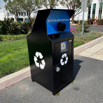 Model CE single trash or recycling enclosure, 40 gal capacity, ADA Compliant Animal resistant heavy duty can enclosure with (1) loading chute or 5" recycle tube. Receptacle with chute can be used for recycling simply by changing the label.
